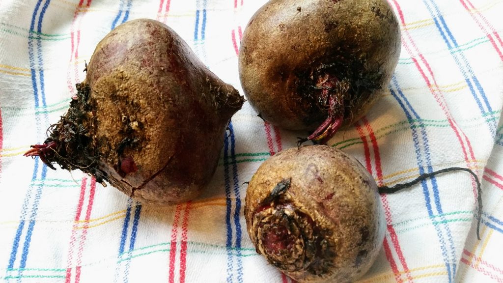 Rote Bete hat jetzt im Oktober Hauptsaison. Da sie sich aber länger lagern lässt, ist sie auch ein klassisches Wintergemüse. Für bequeme Zeitgenossen gibt es bereits gekochte und in Vakuum verpackte Rote Bete im Supermarkt. Mir schmeckt die nicht so gut, aber als schnelle Alternative finde ich sie völlig o.k.