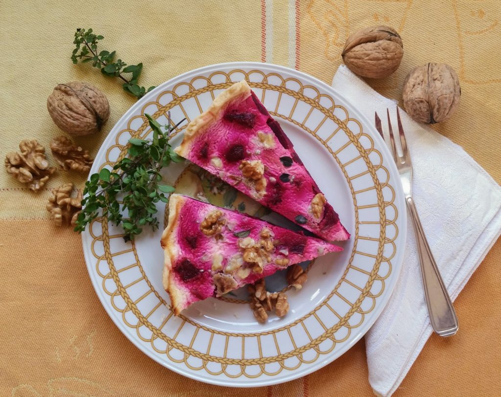 Ich muss zugeben: Sooo gerne mag ich Rote Bete nicht und der Rest der Familie ist auch eher skeptisch. Aber da letzte Woche drei Prachtexemplare in meiner Bio-Gemüsekiste lagen, habe ich mir eine spezielle Quiche ausgedacht, um mir und meinen Lieben die herbstliche Knolle schmackhaft zu machen. Das hat fast geklappt: Dreiviertel der Familie fand das Ergebnis sehr gelungen. Ein Viertel hat sich nicht getraut, zu probieren. Sehr schade, vielleicht beim nächsten Mal. Bis dahin werde ich aber erst noch einmal die Farbe wechseln. Das Rezept klappt nämlich mit Kürbis (z. B. Hokkaido) genauso gut. Die Variante schmeckt der ganzen Familie.